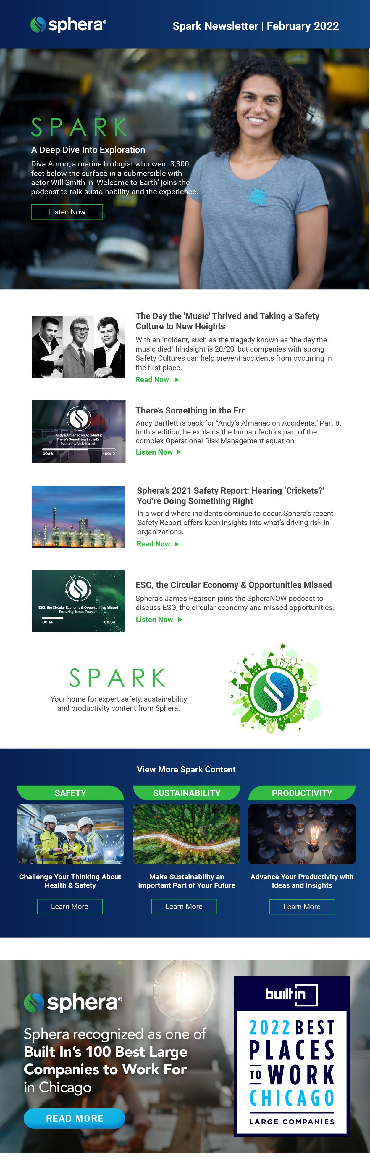 Sphera is a B2B tech company that focuses on sustainability and safety. This is an annual project where we display our internal metrics with the goal of measuring,